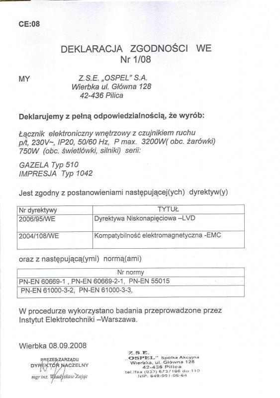 | Parametry techniczne | 16A, 250V, 3520W, IP-20, zaciski gwintowe |