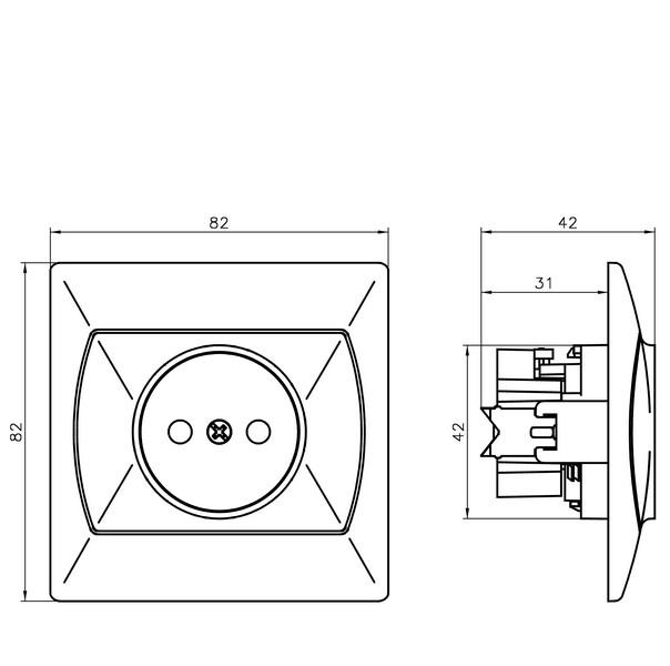 Gniazdo pojedyncze, z przesłonami torów prądowych (brązowy)