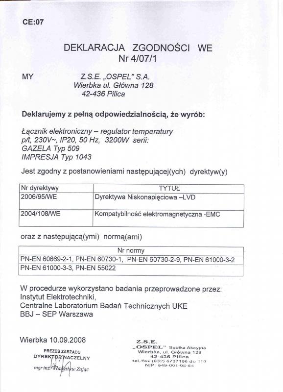 | Parametry techniczne | 230V, zaciski gwintowe |